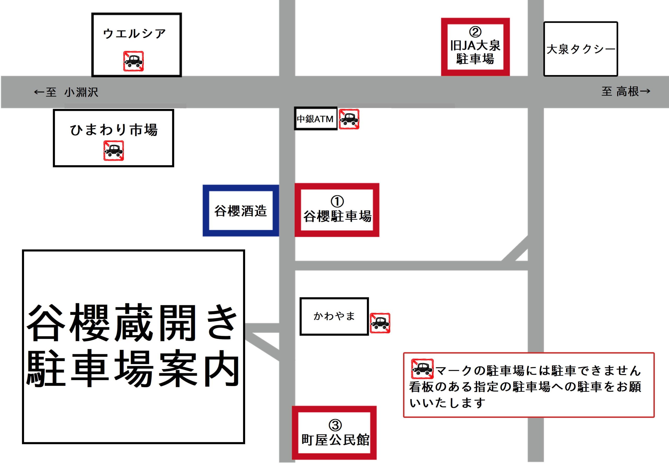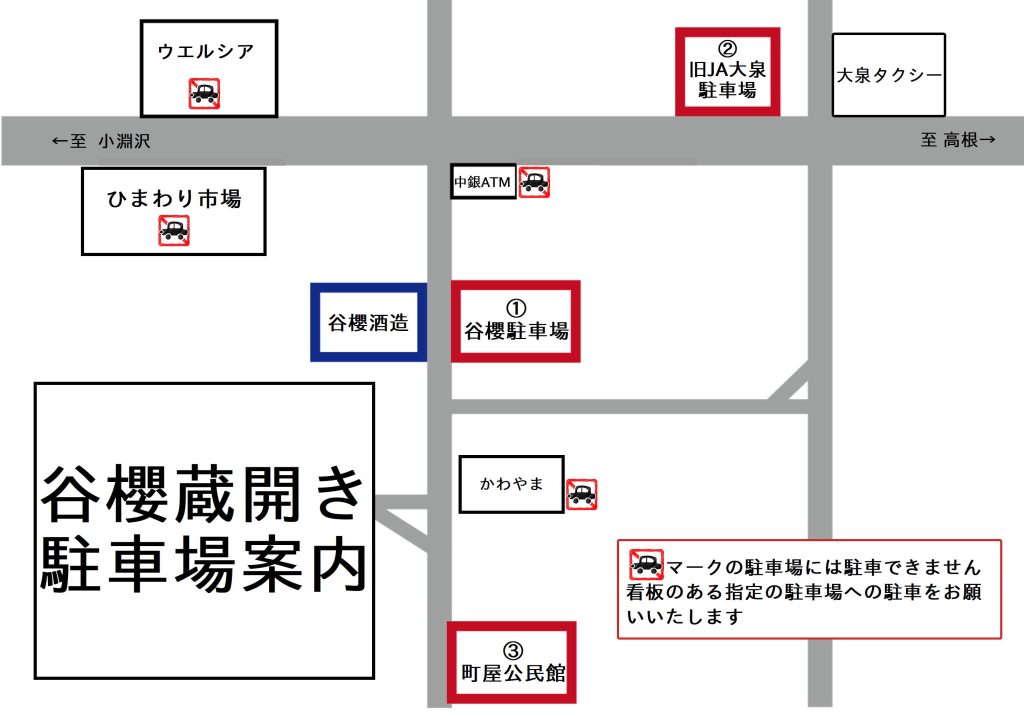 令和8年蔵開き駐車場のお知らせ 2026.03.05 本年の蔵開き駐車場は地図の3カ所となります。 駐車スペースが限られておりますので、乗り合わせでのご来場をお願いいたします。 ご試飲される方の運転はご遠慮ください。 ※ひまわり市場駐車場はご利用になれませんのでご注意ください。 一覧へ戻る 次へ